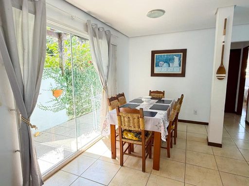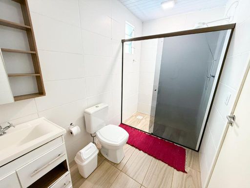 É uma casa térrea com dois quartos, dois banheiros, churrasqueira privativa, acomodações para até sete pessoas, cozinha completa e estacionamento privativo para até dois carros.